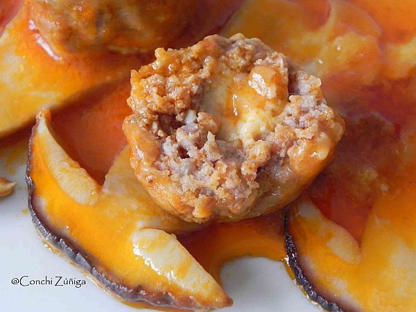 fuego lento durante 40 minutos. Cuando falten 10 minutos disponemos los Boletus sobre las albóndigas, los de